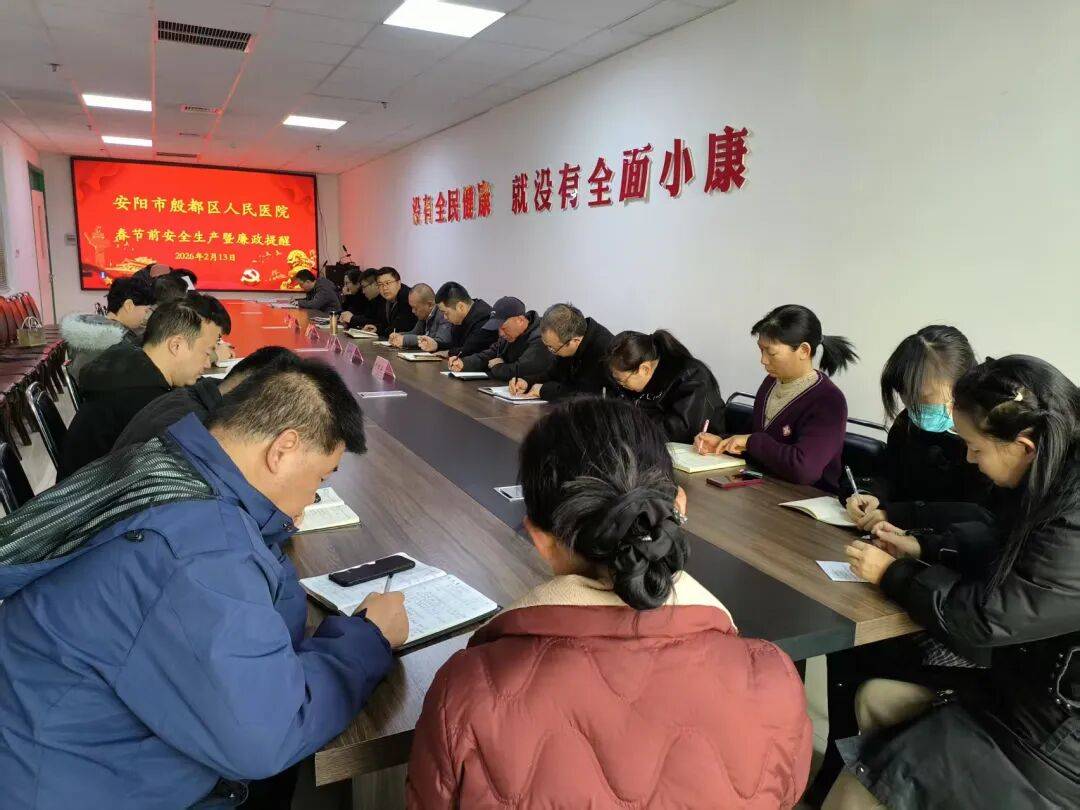 岁序更替,华章日新。在2026年农历新春佳节即将到来之际,为切实筑牢节日安全生产防线,保障医院平稳有序运行与群众就医安全,殷都区人民医院提前部署、周密安排,先后召开春节前安全生产工作会议,并由领导班子带队深入全院开展节前安全生产专项检查,同步走访慰问坚守岗位的一线医务人员,以责任守护平安,以温情传递关怀。