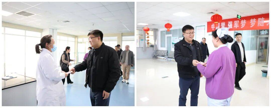 慰问现场,院领导班子与一线医务人员亲切交流,向大家致以诚挚的节日问候与新春祝福,对大家过去一年恪尽职守、守护群众健康的辛勤付出表示衷心感谢。党委书记司晓剑强调,春节是医疗服务保障的关键时期,全院职工要始终坚持以患者为中心,绷紧安全之弦、压实岗位之责,严格落实节日值班值守制度,科学调配医疗资源,强化急诊急救与应急处置能力,全力保障群众就医需求,守护人民群众生命健康。