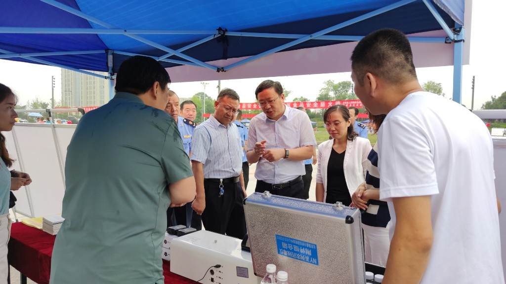 启动仪式后,县领导何国锋一行对主场活动进行了巡视。在宣传区,各单位设置宣传版面和咨询台,现场发放宣传资料,接受群众食品安全方面的知识咨询。