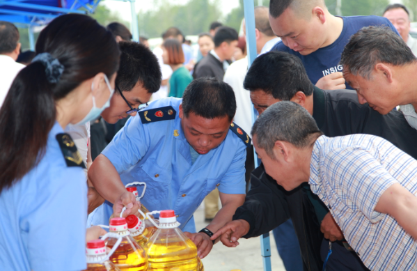 在展示区,各有关单位展示了食品安全执法装备、检验检测快检设备,对假冒伪劣产品进行曝光,为群众详细讲解如何辨别真假汾酒、假冒食用油、饮料等。在食用农产品和食品展示区,食品和农产品生产企业展示了优质产品。